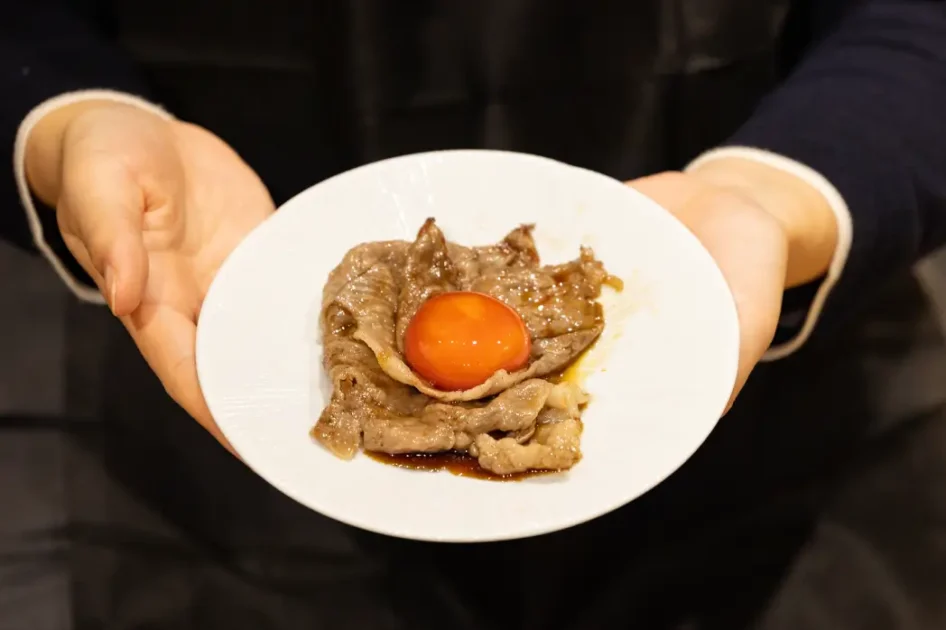 濃厚なコクと鮮やかな色が特徴の、選び抜かれたブランド卵を使用。特製の割り下に潜らせた薄切りのサーロインを、この黄金色の黄身に絡めていただく贅沢な一品。まろやかな喉越しと深いコクが、焼肉の新しい表情を引き出します。