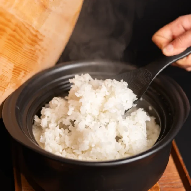 土釜で食べる白いご飯