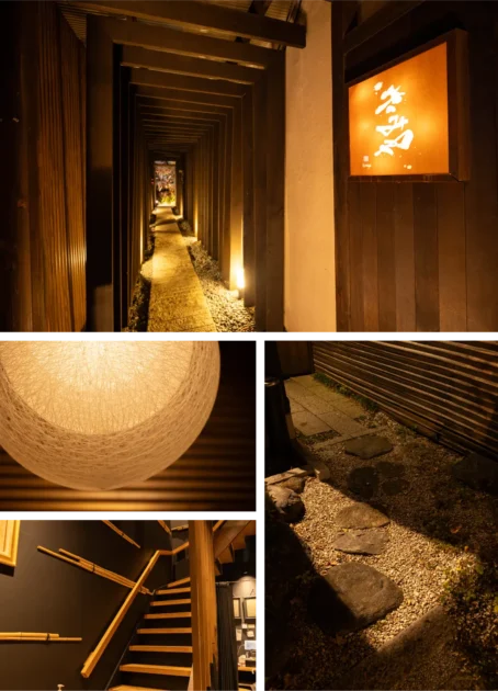 木の温もりと柔らかな灯りが調和したモダンな意匠が、
